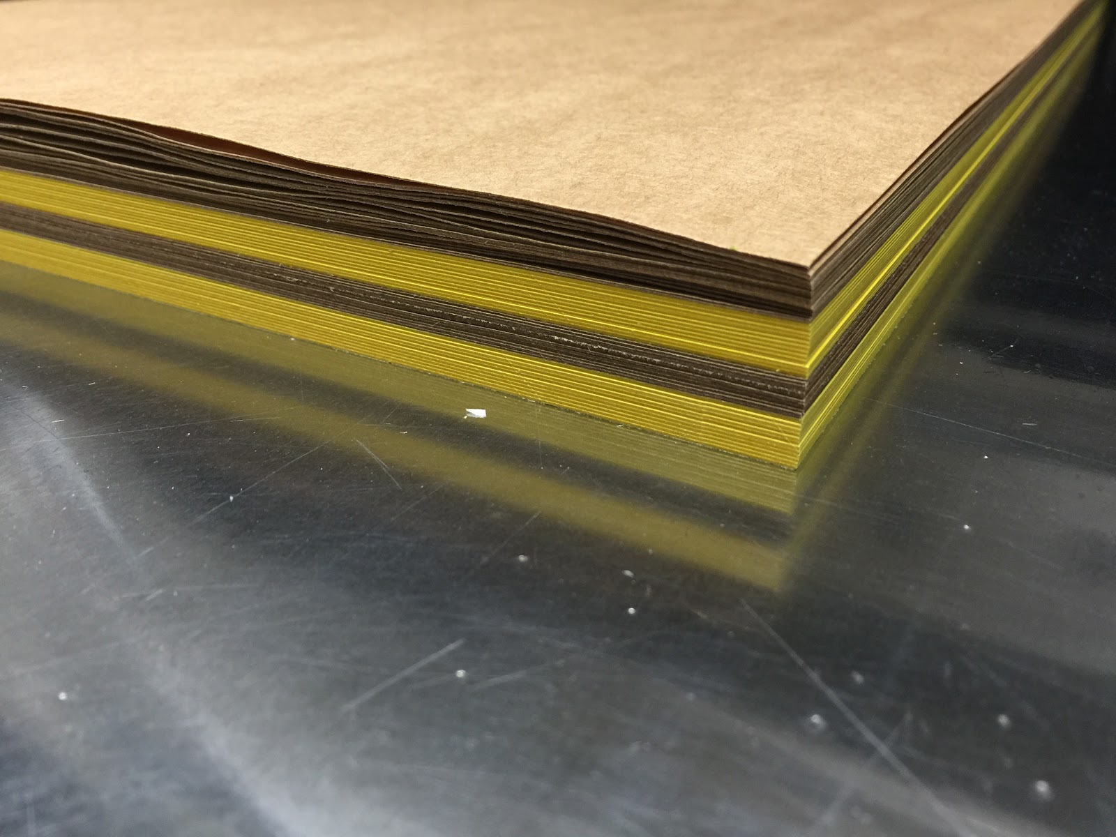 クラフトを外側にして、芯をイエローの板紙。